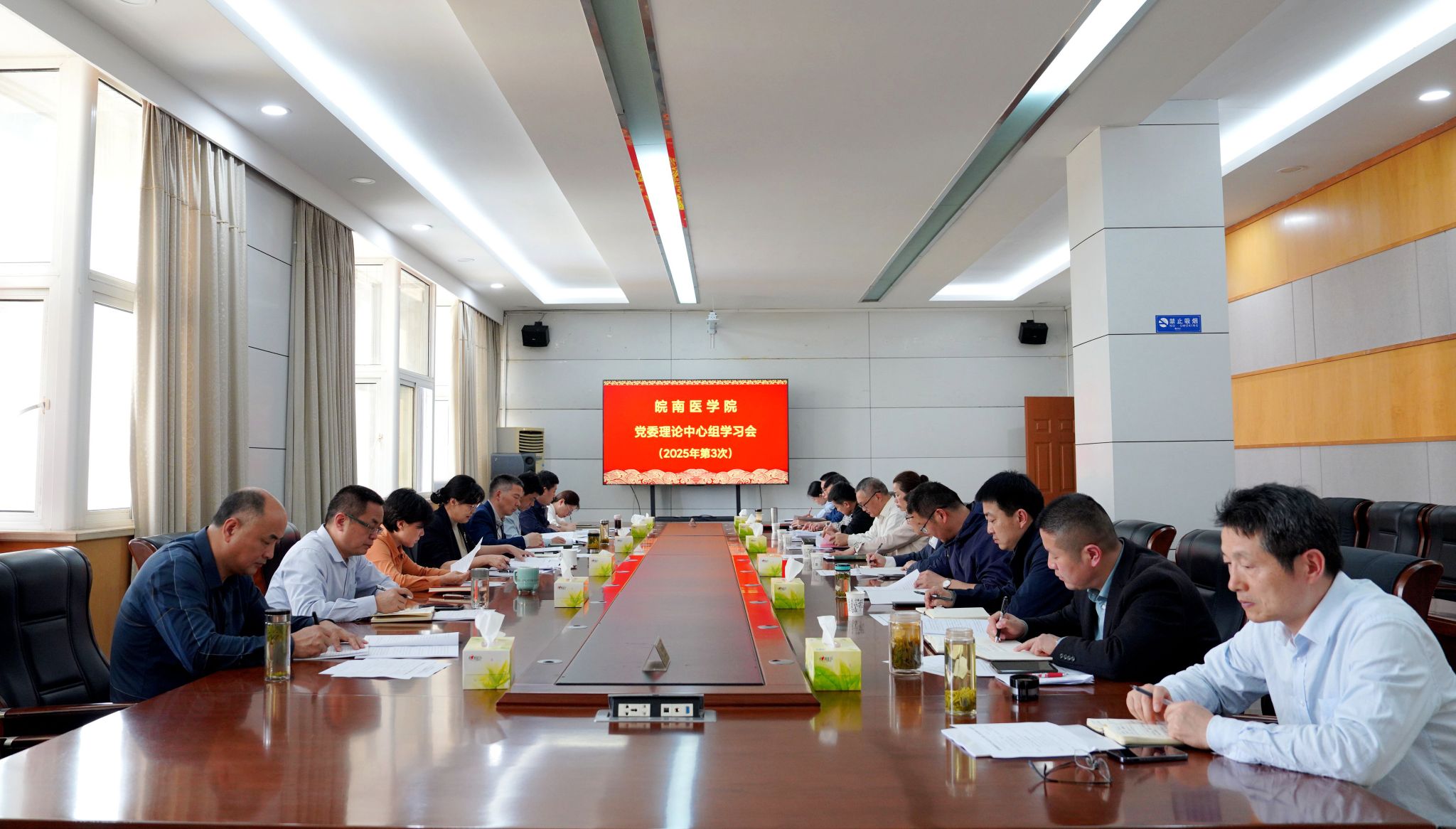 校党委委员参加会议,校党委理论学习中心组秘书及纪委办、审计处、巡察办负责人列席会议。(郭佳薇、侯东晓/文 郭佳薇/摄)