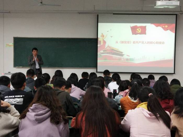10月26日下午,口腔医学院党委副书记、副院长张琪琪以“《从新党章》看共产党人的初心和使命”为专题进行授课。首先,张琪琪向学员们介绍了中国共产党人的初心和使命是什么,《新党章》中哪些内容体现了不忘初心、牢记使命,同时总体概述了“不忘初心、牢记使命”主题教育的相关内容。随后,他解读了什么是党章,为什么要修改党章,以及十九大党章重要修改内容,并对同学们学习贯彻十九大党章提出了建议。他激励所有学员要端正入党动机,以实际行动扣好入党的“第一粒扣子”;要牢记个人入党初心和肩负使命,努力学习,刻苦钻研,知行合一,争做德智体美劳全面发展的社会主义建设者和接班人。