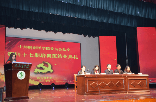 组织部副部长、党校副校长任苔蓉宣读了《关于表彰党校第四十七期培训班优秀学员的决定》。检验学院2017级徐娇阳同学作为优秀学员代表在会上发言。