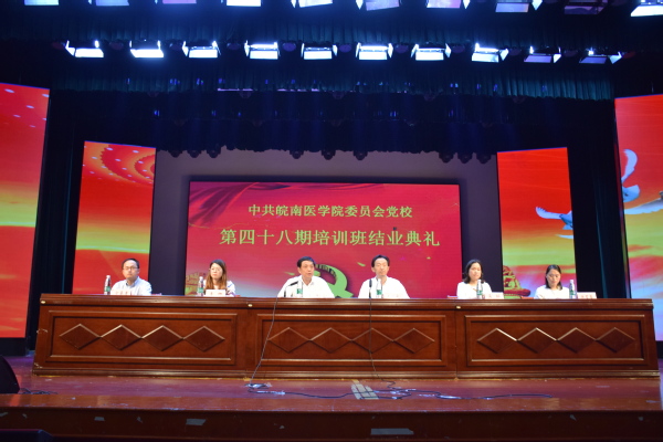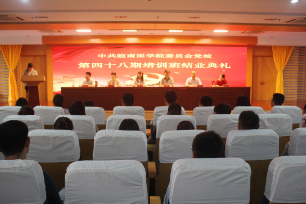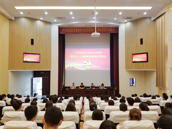 组织部副部长、党校副校长任苔蓉宣读了《关于表彰党校第四十八期培训班优秀学员的决定》。麻醉学院2015级钱真真同学作为优秀学员代表在会上发言。结业典礼在庄重激昂的国际歌声中落下帷幕。临床医学院、研究生学院、药学院党委分党校结业典礼分别在图书馆三楼学术报告厅和逸夫科技楼报告厅举行。