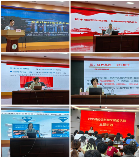 本次培训班内容丰富、形式多样,涵盖理论学习、案例剖析、实践教学等多个层面。理论学习主要涵盖党的二十届三中全会精神、党章党纪、中央八项规定精神、党内政治生活准则、意识形态以及习近平总书记考察安徽重要讲话精神等内容;案例教学中,邀请全国优秀共产党员、全国抗疫先进个人、第一附属医院副院长、芜湖市第二人民医院院长姜小敢,全国援外医疗工作先进个人、芜湖市中医医院针灸科副主任马岚,安徽省“百优大学生”、公共卫生学院学生党员刘泽权作先进事迹报告。培训班还设置了视频教学,开展了专题研讨,组织优秀学员前往王稼祥纪念园开展实践教学,让学员在实地感悟中传承红色基因,汲取奋进力量。(吴义红 文/摄)
