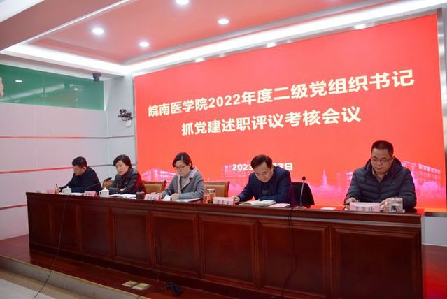 述职评议考核会议采取现场述职和书面述职相结合的形式进行。临床医学院党委等12个二级党组织书记紧扣述职评议考核内容,围绕履行第一责任人职责抓基层党建的实招硬招、亮点成绩、问题不足、主要原因和改进措施等方面进行现场述职,其他7个二级党组织书记进行书面述职。分管校领导逐一点评,各二级党组织书记现场作表态发言。