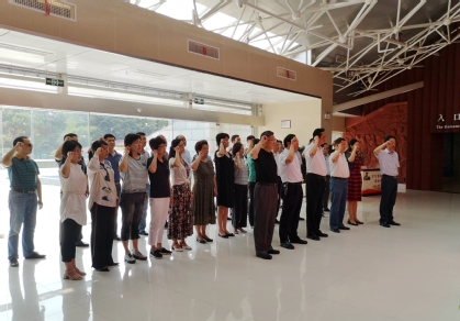 在烈士纪念碑前,全体同志齐唱国歌、脱帽肃立、鞠躬默哀、敬献花圈、行注目礼,大家怀着崇敬的心情绕行纪念碑一周,向革命先烈的不朽功勋和光辉业绩致敬,寄托对先烈的无限哀思,表达深切缅怀和敬仰之情。全体同志面对党旗,庄严宣誓,重温入党誓词,表达为共产主义事业奋斗终身的决心。在烈士事迹纪念馆,同志们在讲解员的引领下,浏览了大量珍贵文物和丰富资料,了解了自辛亥革命到中华人民共和国成立以来,芜湖人民百余年来的爱国主义革命斗争史,大家深为芜湖儿女抛头颅洒热血的英雄事迹所感动,表示要倍加珍惜来之不易的幸福生活,以办好人民满意的教育告慰先烈。