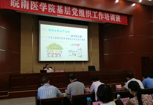 7月11日上午,阜阳市直工委书记高奎为大家作了题为《新形势下高校党支部建设》的讲座,高奎结合自己30多年的党建工作经验,采用生动的语言和详实的案例从十八大以来管党治党的经验入手,分析了基层党建工作存在的问题,对基层党组织标准化建设进行详细解读,提出诸多加强基层党建工作规范性的建设性意见,使基层党务工作者们受益匪浅。
