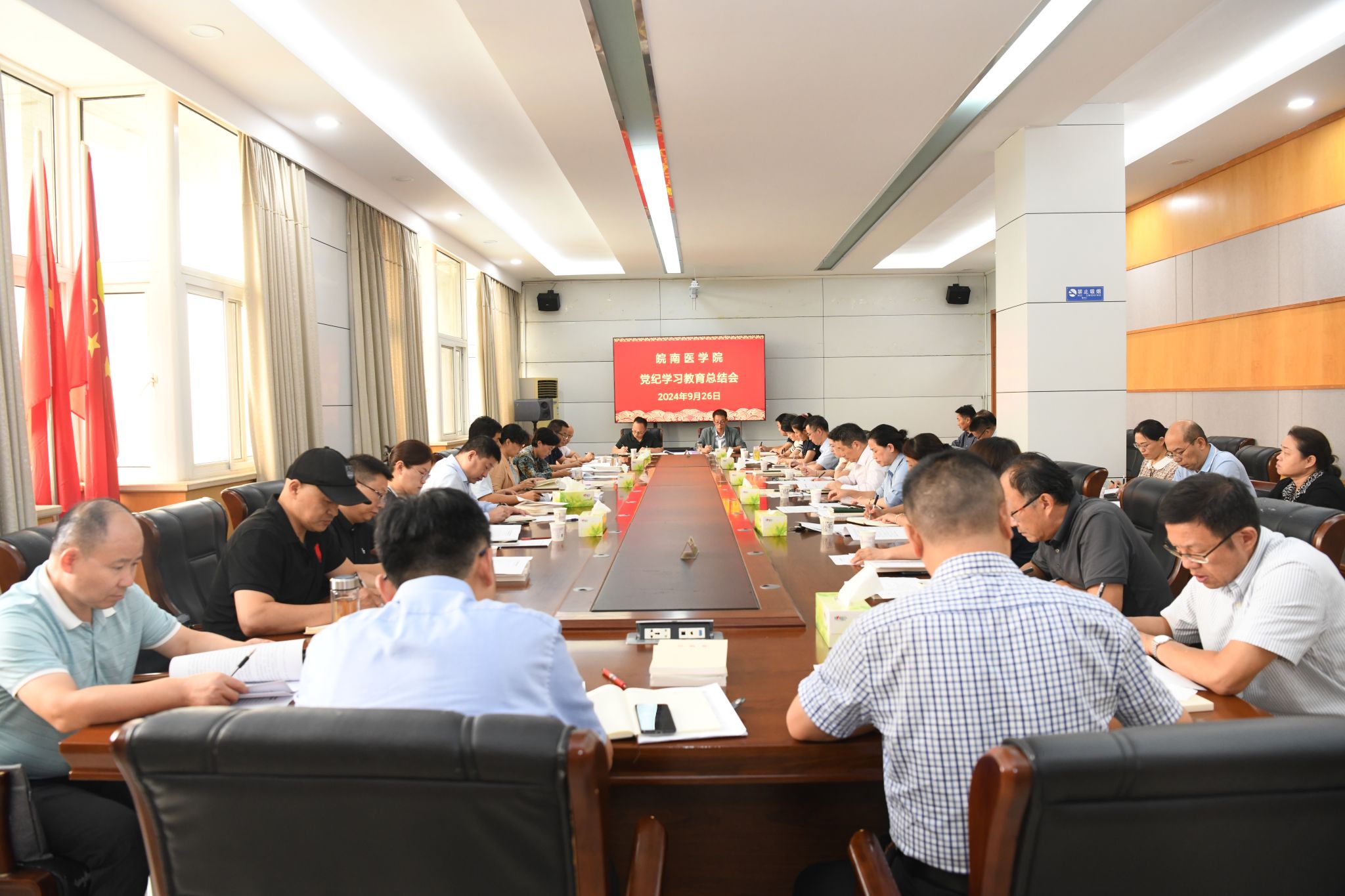 校党委委员、党委职能部门负责人、二级党组织书记参加会议。(张犟/文 郭佳薇/摄)