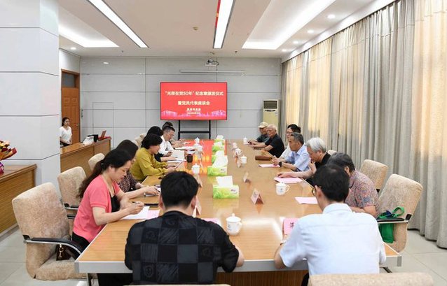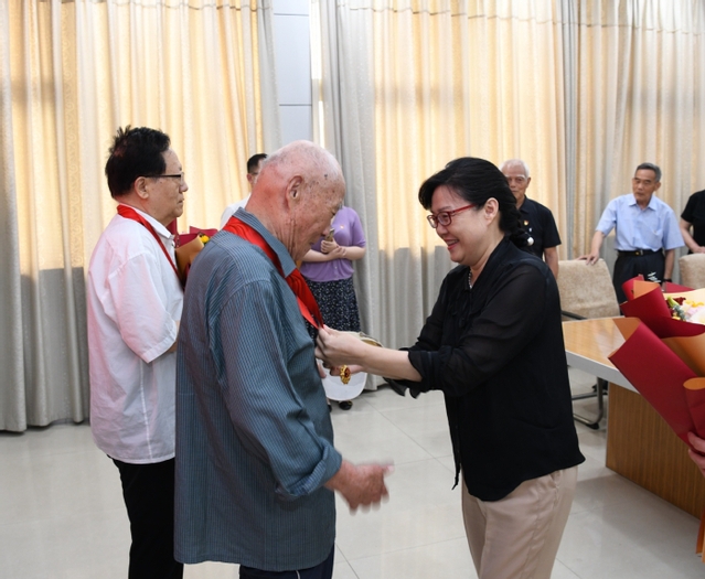 在热烈融洽的氛围中,夏劲松为老党员颁发“光荣在党50年”纪念章。学生党员向老党员献上鲜花,现场响起阵阵热烈掌声。老党员们手捧纪念章和鲜花,自豪之情溢于言表。