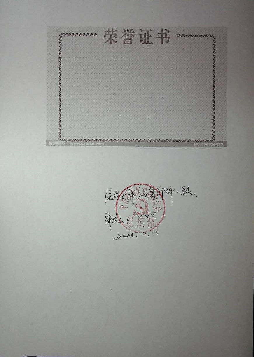 3.奖励证书归档参考样式: