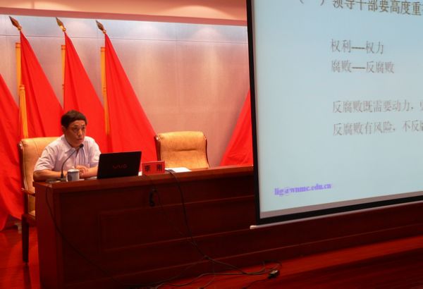 李刚书记通过国内外反腐败工作的实例和案例,全面深刻地阐述了当前反腐败斗争的形势,强调领导干部要正确认识当前反腐败斗争工作,高度重视反腐败斗争。对如何做反腐倡廉建设的宣传者、组织者和促进者,李刚书记提出要求:一要切实履行责任,践行勤政廉政;二要正确对待提醒,自觉接受监督;三要戒除贪心杂念,陶冶高尚情操;四要加强制度建设,带头遵纪守法。李刚书记的报告紧紧围绕主题,充分结合了高校反腐倡廉工作实际,图文并茂,引经据典,旁征博引,深入浅出,给大家上了一堂生动精彩的廉政建设教育课。
