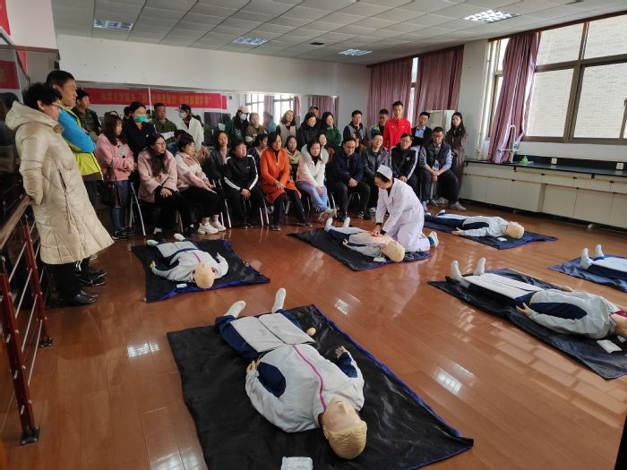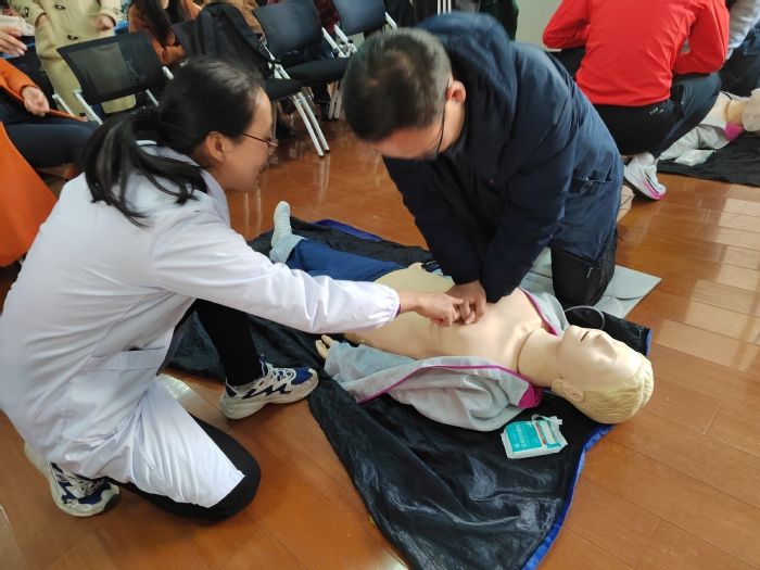 活动中,护理学院教工第一党支部党员教师首先用通俗易懂的语言、细致准确的动作,详细讲解和示范心肺复苏术和海姆利克急救法。公共基础学院的老师们踊跃参与其中,通过操作人体模型反复演练,进一步巩固了基本知识,掌握了现场急救的基本技能。本次活动有助于公共课教师增强应急意识和突发事件处置能力,获得了与会教师的一致好评。