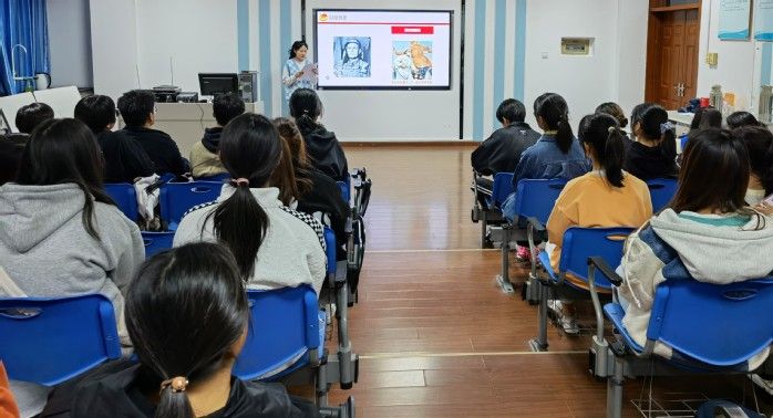 发布时间:2022-03-11 点击次数: 发布部门:组织部(党校)为进一步加强大学生理论学习教育,发挥朋辈教育在大学生成长成才中的积极作用,2022年3月8日,护理学院在3号实验楼示教室举办第一期“闪闪红星”小讲堂。学院2020级周雨琪同学担任主讲,学院团委副书记周浩然和团委、学生会干部以及团支部书记现场聆听。