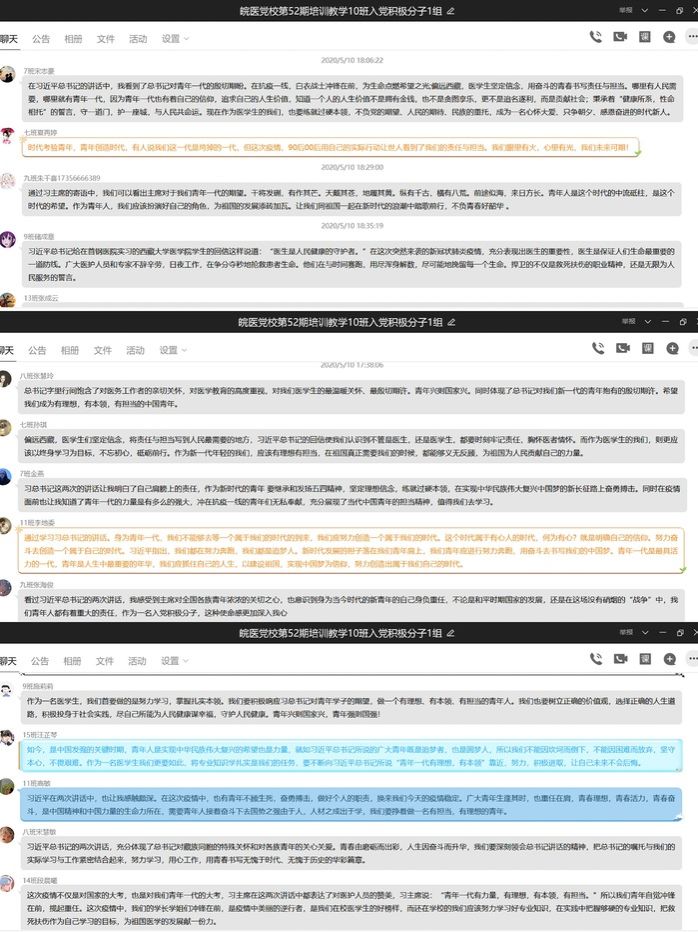 同时,在党校班主任的精心组织下,全体学员在线上学唱国际歌,观看《榜样4》和纪录片《钟南山》、《生死金银潭》,开展线上主题讨论并撰写培训学习心得体会,进一步提高了线上培训学习效果。
