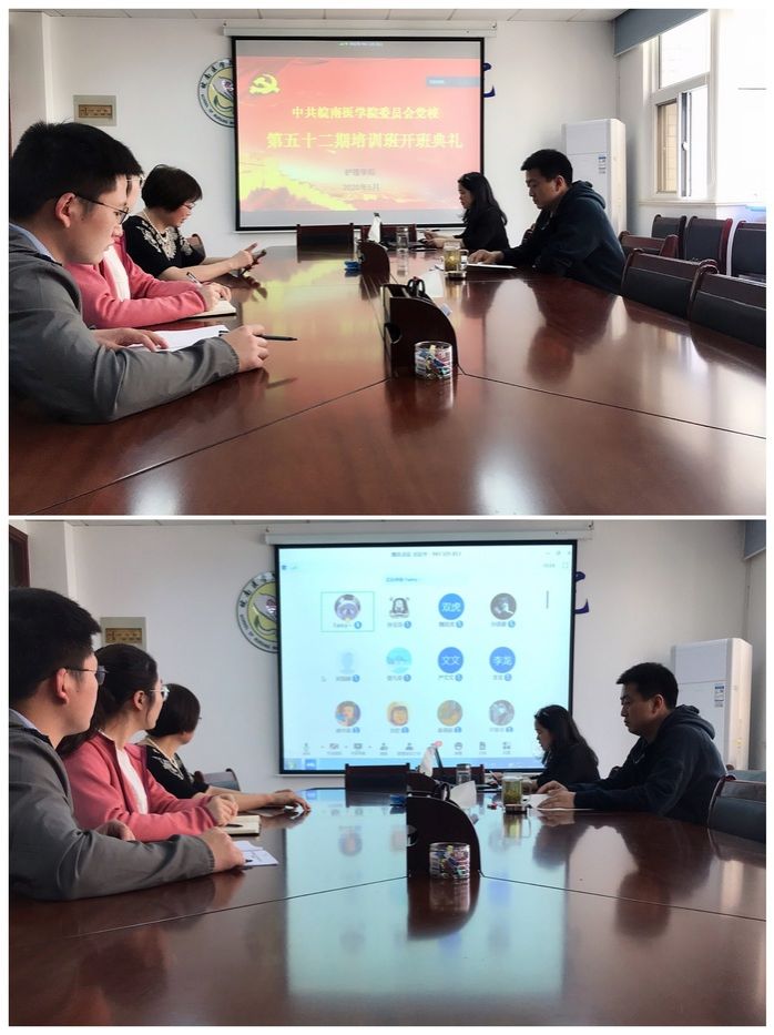 2020年5月10日下午,学院利用腾讯会议网络平台举行第52期入党积极分子培训班开班仪式暨专题授课。学院党委书记陈抗震、院长李远珍、党委副书记吴梅、党务秘书王守平和党校班主任张行、范绮慧两位老师及全体学员参加开班仪式。开班仪式由吴梅主持。第51期入党积极分子培训班优秀学员代表彭永康同学分享了党校学习的收获和体会,本期学员袁甲丽同学代表全体学员作表态发言。吴梅从坚定理想信念、遵守学习纪律、勇担时代责任等方面提出了培训要求。