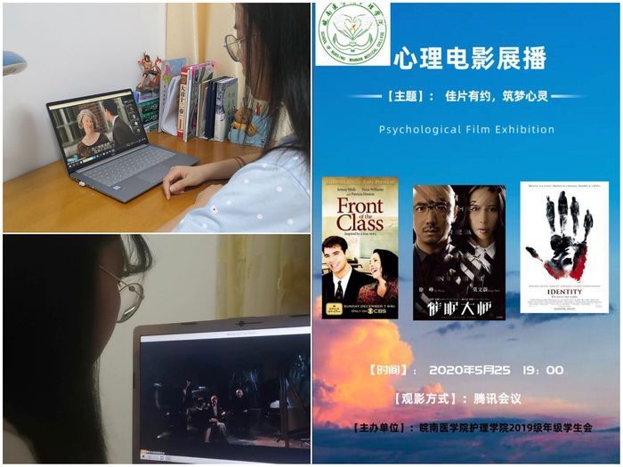 佳片有约,筑梦心灵。5月25日晚,护理学院2019级全体同学通过腾讯会议参加了线上电影展播活动,该场展播放映了《催眠大师》、《叫我第一名》等心理电影,电影内容丰富,故事精彩,传递正能量。通过观看电影,同学们表示对情绪调控、人际关系、压力释放等各方面有了正确认识,同时也对心理健康这一概念有了更深刻的理解。